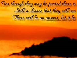 This song was the name of The Beatles last album. The album was supposed to be entitled “Get Back”, but that proved to be entirely inappropriate. There was no going back to what they were – there was only moving away from each other to pursue their own lives and careers. It was time to just “let it be” and travel another road.
